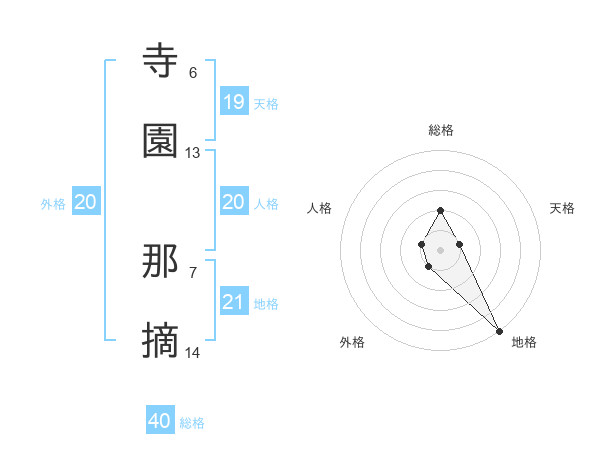寺園 那摘さんの総格は40画の2点!