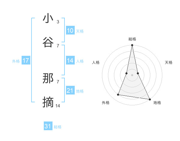 小谷 那摘さんを姓名の画数から五運を鑑定