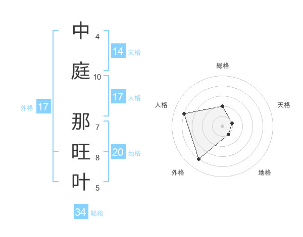 中庭 那旺叶さんの外格は17画の4点!
