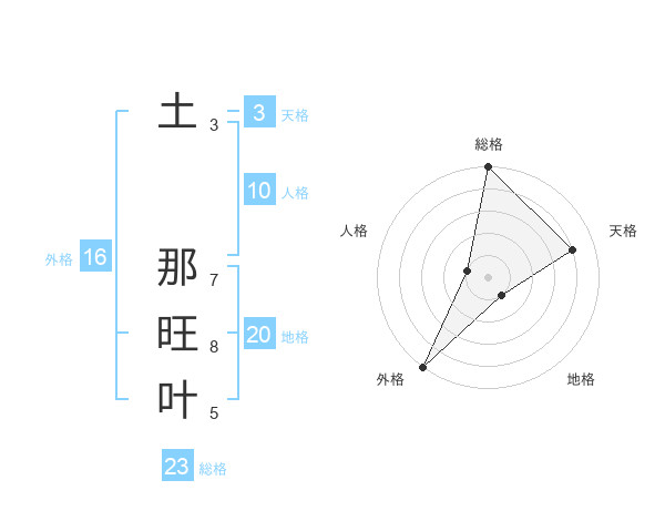 土 那旺叶さんの総格は23画の5点!
