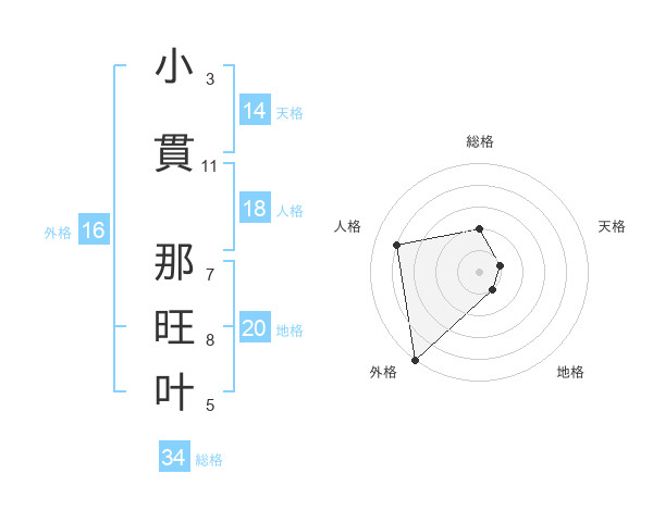 小貫 那旺叶さんを姓名の画数から五運を鑑定