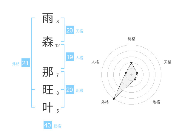 雨森 那旺叶さんを姓名の画数から五運を鑑定
