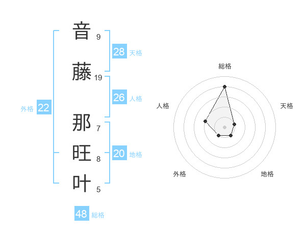音藤 那旺叶さんの総格は48画の4点!