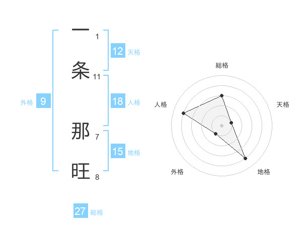 一条 那旺さんの総格は27画の3点!