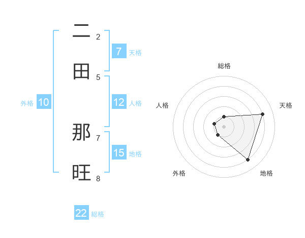 二田 那旺さんの総格は22画の1点!