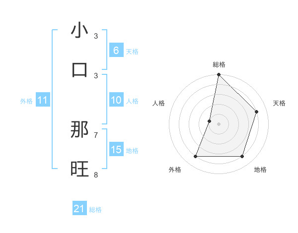 小口 那旺さんの総格は21画の5点!