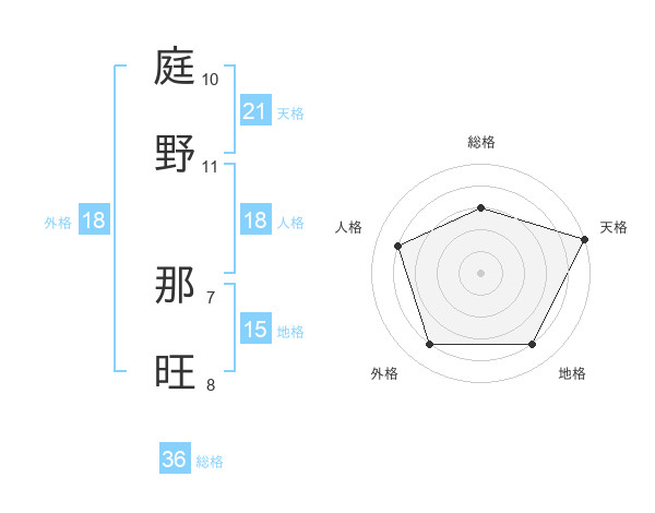 庭野 那旺さんを姓名の画数から五運を鑑定