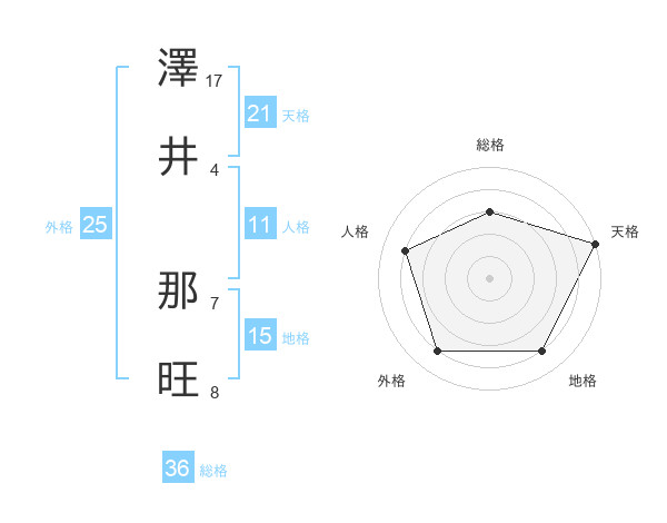 澤井 那旺さんの天格は21画の5点!