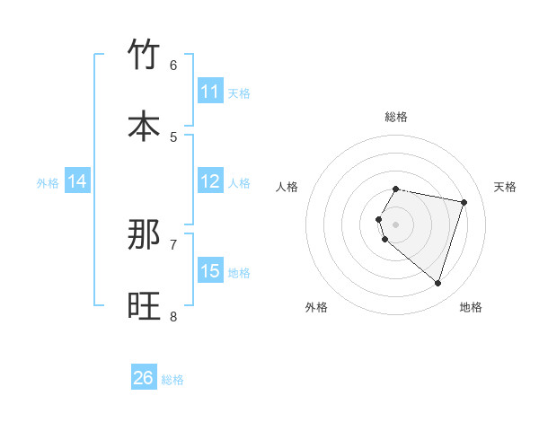 竹本 那旺さんを姓名の画数から五運を鑑定