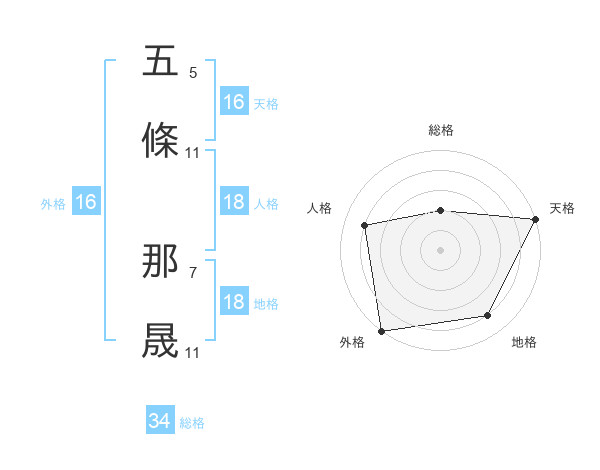 五條 那晟さんの総格は34画の2点!
