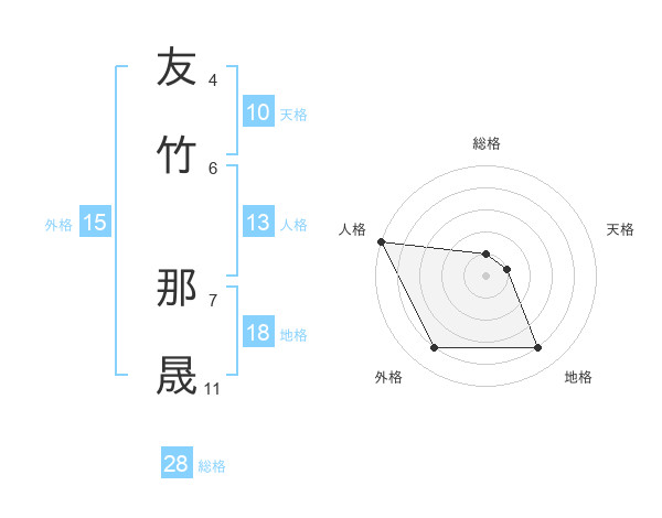 友竹 那晟さんの総格は28画の1点!