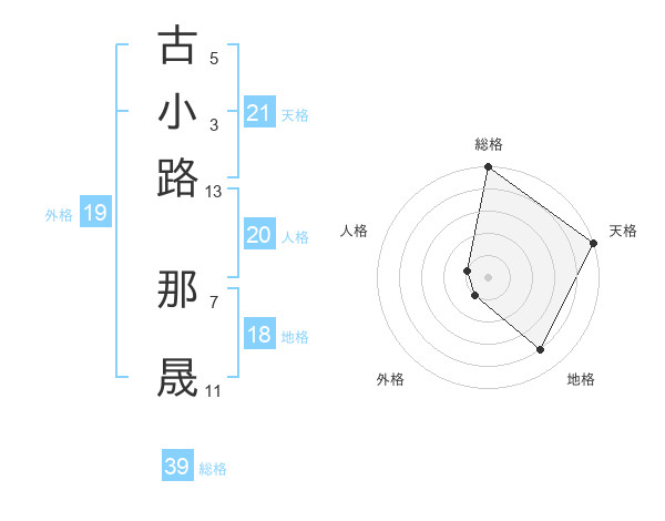 古小路 那晟さんの総格は39画の5点!