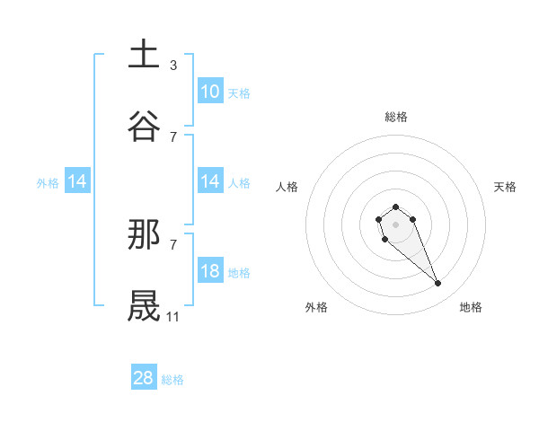 土谷 那晟さんの総格は28画の1点!