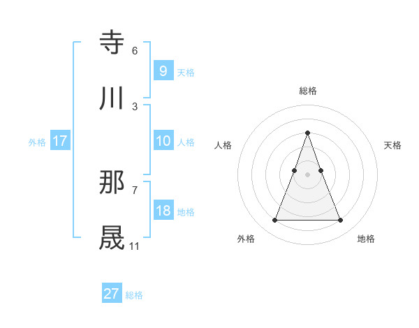 寺川 那晟さんを姓名の画数から五運を鑑定