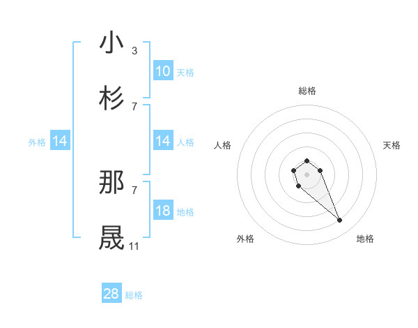 小杉 那晟さんの総格は28画の1点!