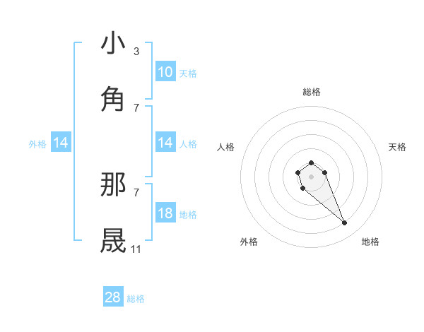 小角 那晟さんの総格は28画の1点!