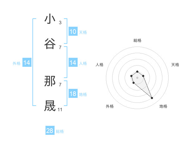 小谷 那晟さんの総格は28画の1点!