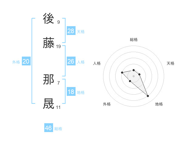 後藤 那晟さんを姓名の画数から五運を鑑定