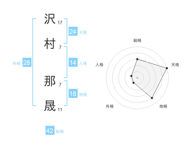 沢村 那晟さんを姓名の画数から五運を鑑定