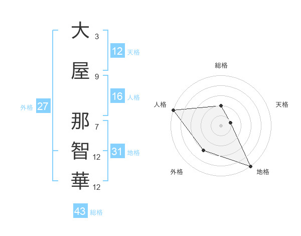 大屋 那智華さんを姓名の画数から五運を鑑定