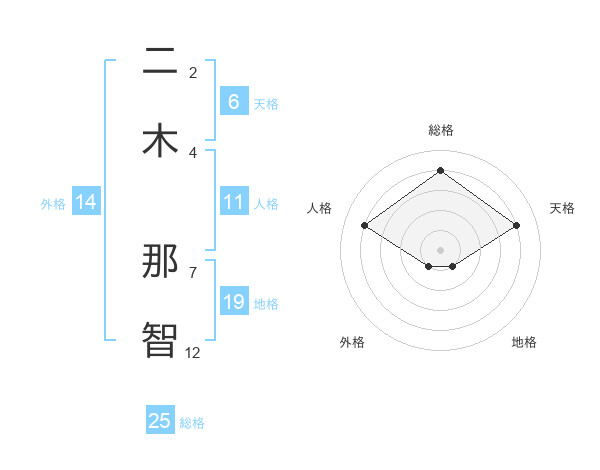 二木 那智さんの総格は25画の4点!