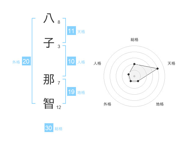 八子 那智さんの総格は30画の2点!