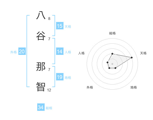 八谷 那智さんの総格は34画の2点!