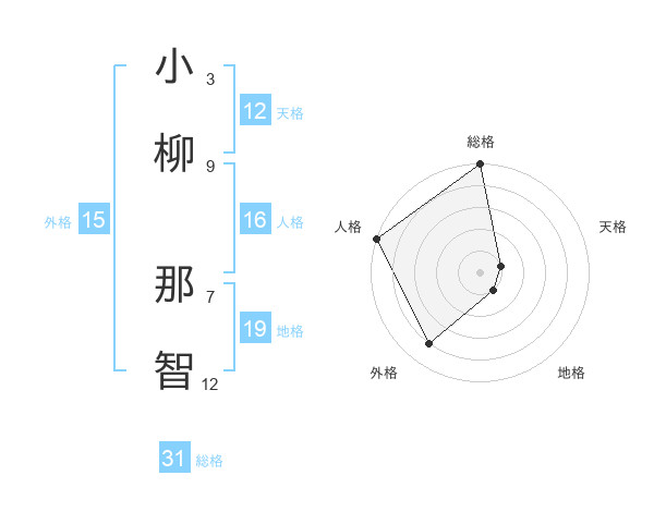 小柳 那智さんの天格は12画の1点!