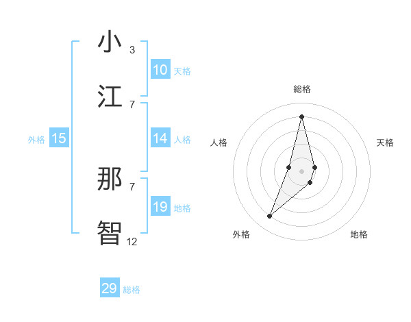 小江 那智さんの総格は29画の4点!
