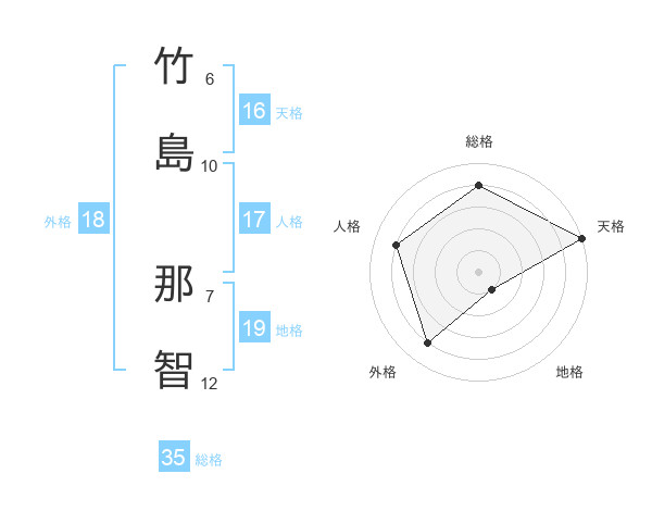 竹島 那智さんの天格は16画の5点!