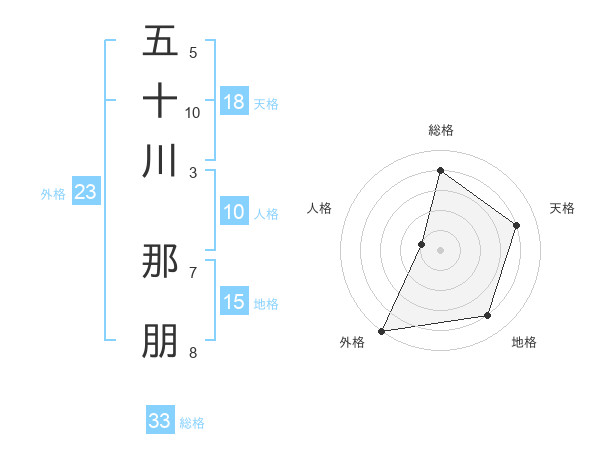 五十川 那朋さんの外格は23画の5点!
