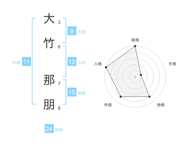 大竹 那朋さんを姓名の画数から五運を鑑定