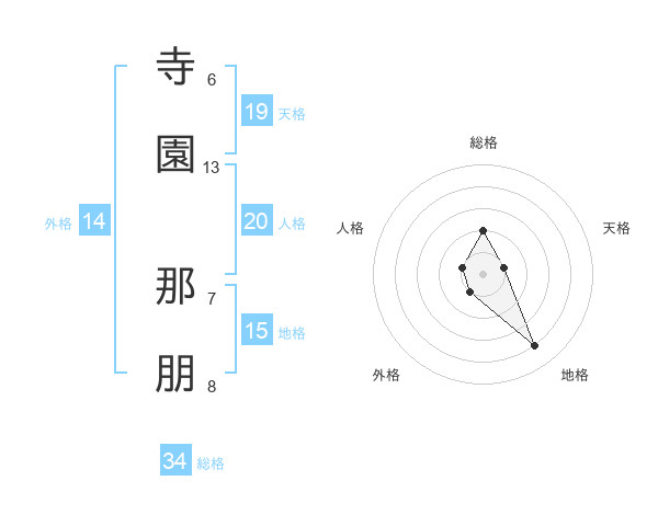 寺園 那朋さんの天格は19画の1点!