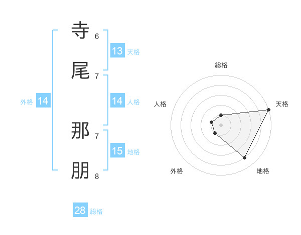 寺尾 那朋さんの天格は13画の5点!