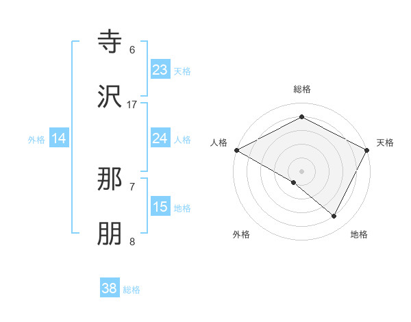 寺沢 那朋さんの総格は38画の4点!