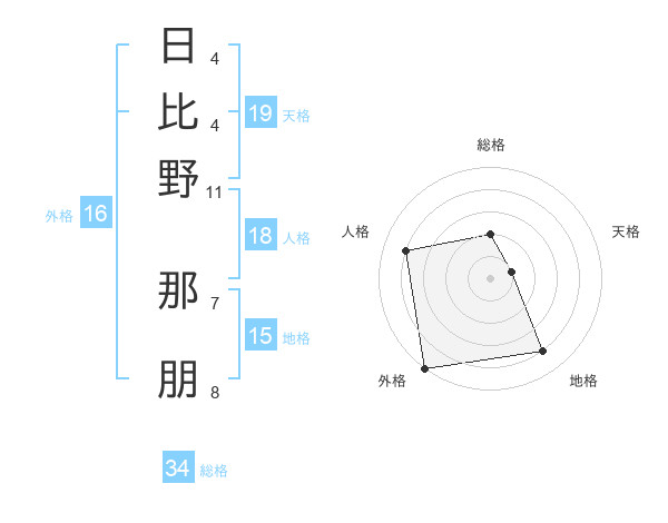 日比野 那朋さんの外格は16画の5点