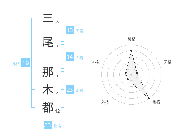 三尾 那木都さんの総格は33画の4点