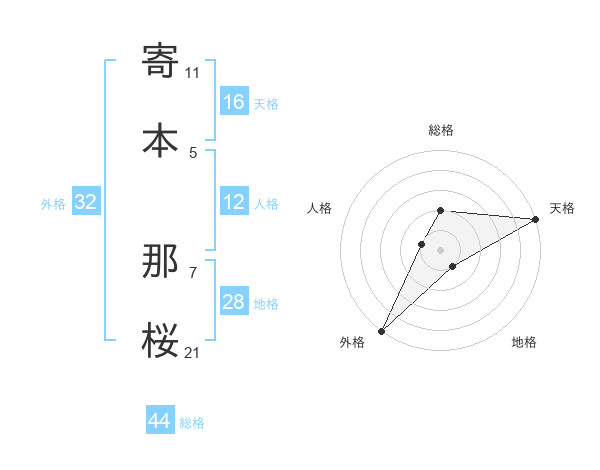 寄本 那桜さんの外格は32画の5点!
