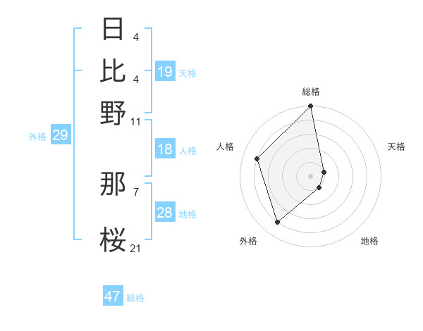 日比野 那桜さんを姓名の画数から五運を鑑定