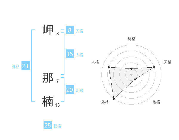 岬 那楠さんの外格は21画の5点!