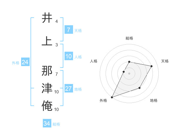 井上 那津俺さんの総格は34画の2点!