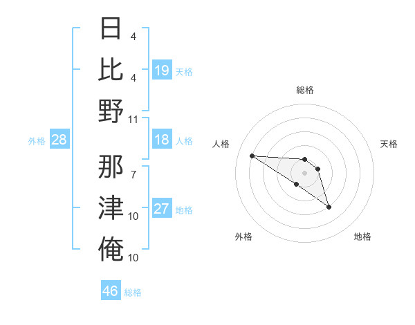 日比野 那津俺さんを姓名の画数から五運を鑑定