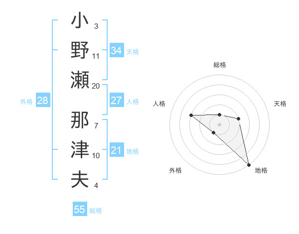 小野瀬 那津夫さんを姓名の画数から五運を鑑定