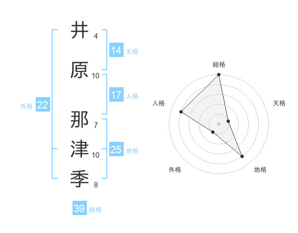 井原 那津季さんの総格は39画の5点