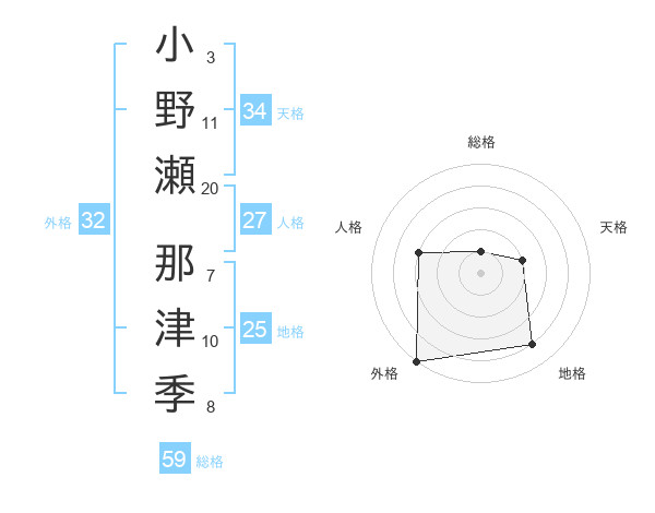 小野瀬 那津季さんの総格は59画の1点!