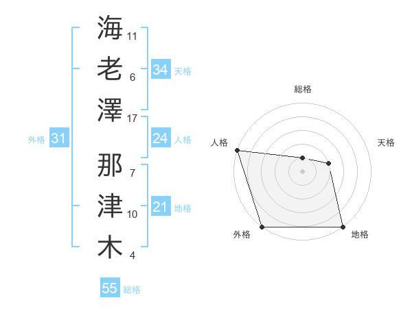海老澤 那津木さんを姓名の画数から五運を鑑定