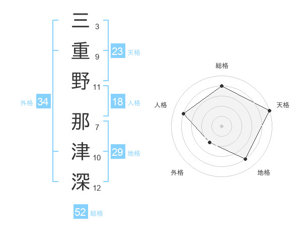 三重野 那津深さんを姓名の画数から五運を鑑定