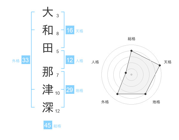 大和田 那津深さんを姓名の画数から五運を鑑定