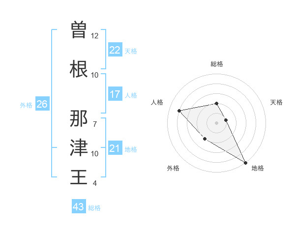 曽根 那津王さんを姓名の画数から五運を鑑定