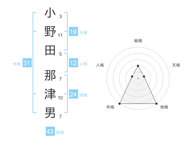 小野田 那津男さんを姓名の画数から五運を鑑定